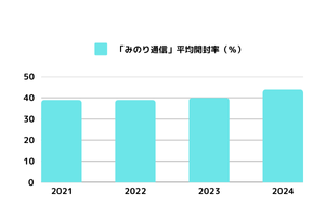 メルマガの平均開封率は約15~20%(※)と言われていますが、「みのり通信」は配信開始から変わらず約40%を維持し続けています。