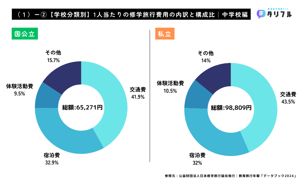 ⇒宿泊日数の平均はほぼ同数にもかかわらず、交通費(主にバス代)や宿泊費、体験活動費などがいずれも高くなっています。
