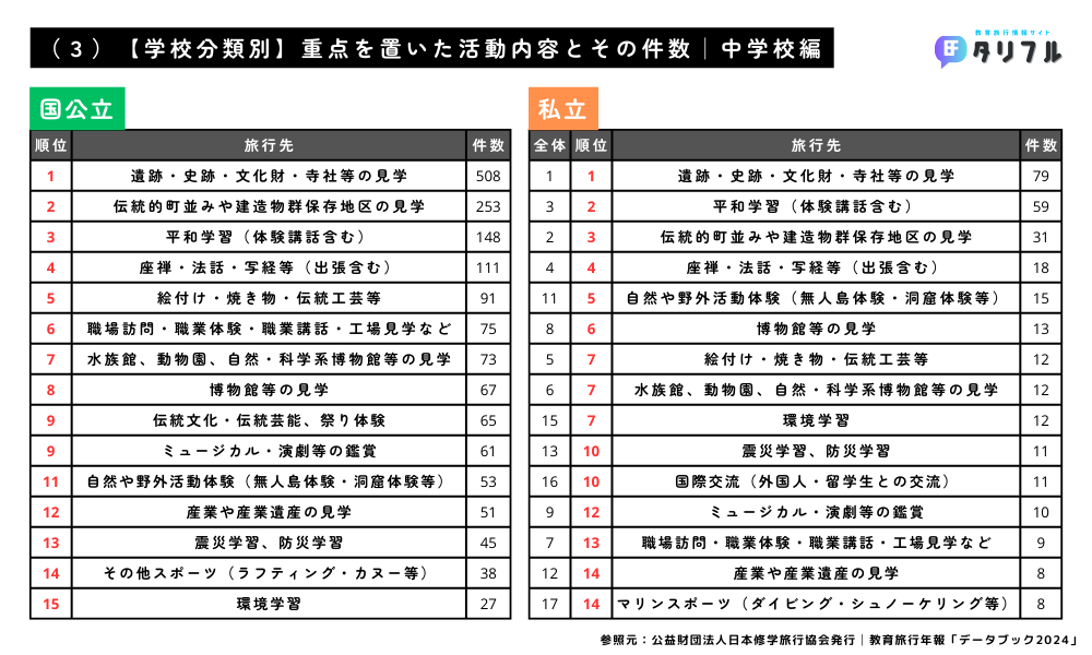 国公立と私立での重点を置いた体験活動内容のちがいは?