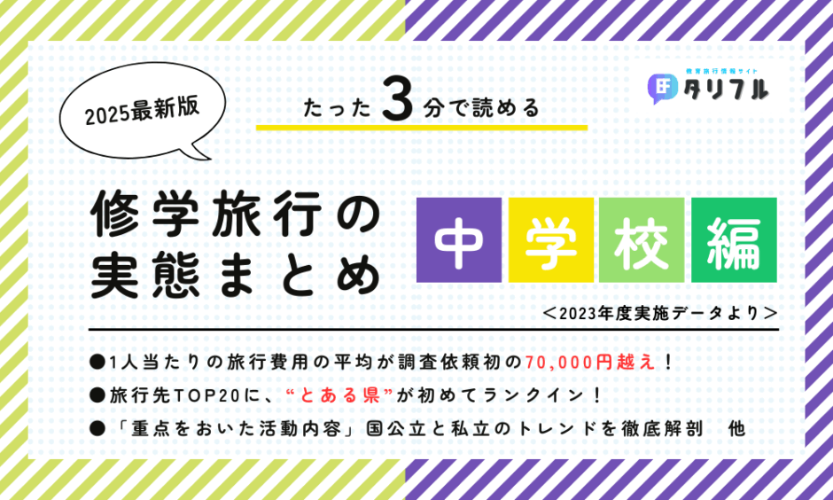 【まとめ】国内修学旅行の実態(2023年度実施)│中学校編