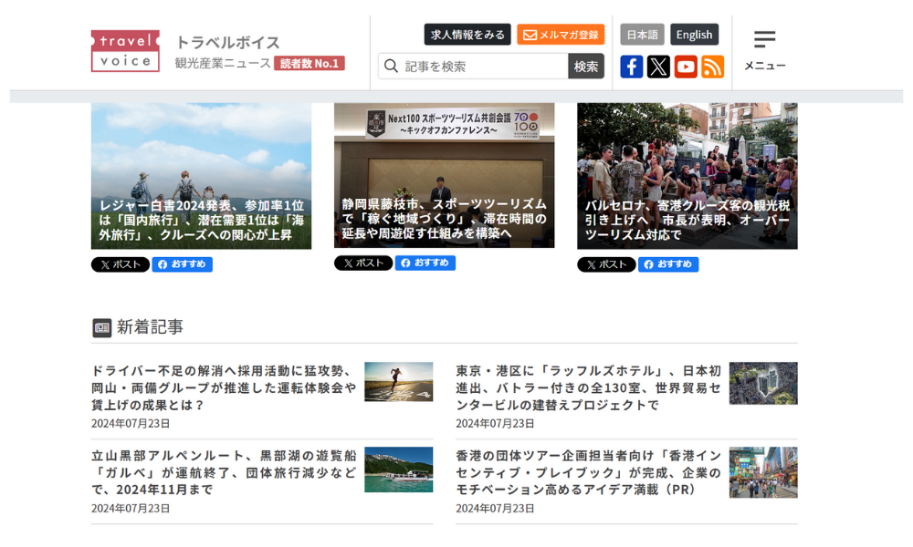 ★サイトURL:トラベルボイス|観光産業ニュース(読者数No.1) (travelvoice.jp)